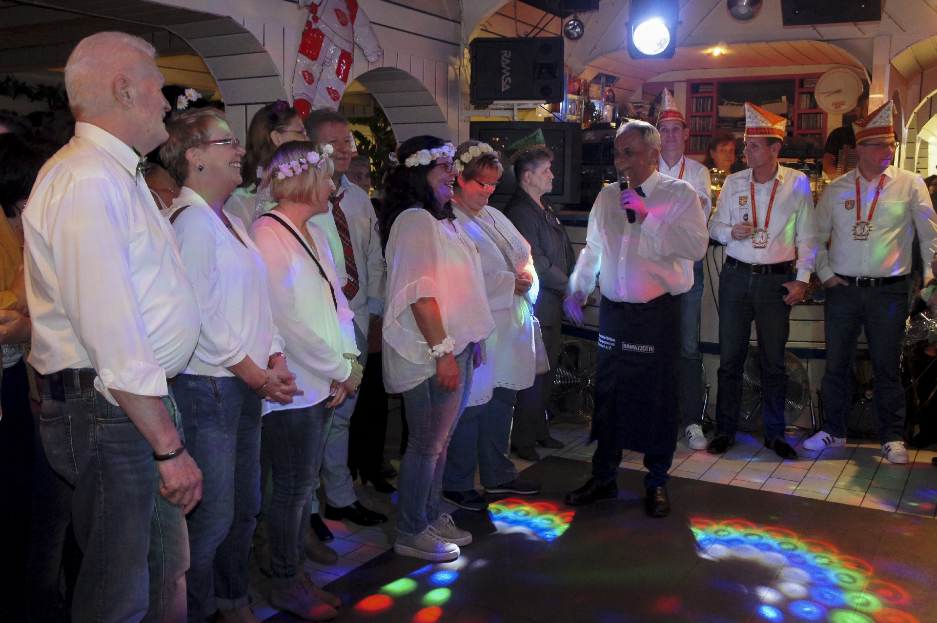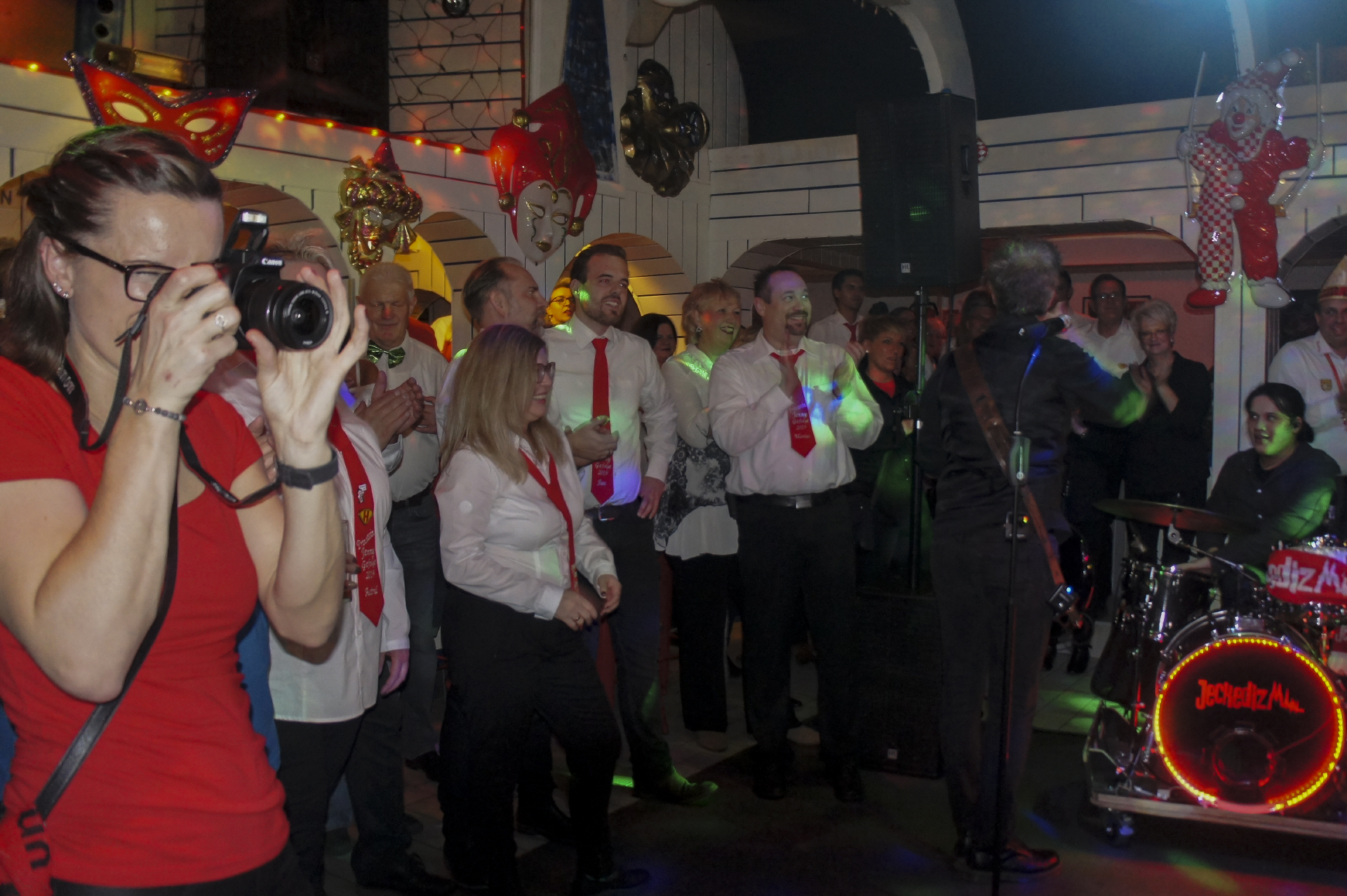 Nun durfte gefeiert werden. Für die musikalische Gestaltung des Abends zeichnete sich auch Wolfgang Mertgen verantwortlich. Wieder mal hatte er ein glückliches Händchen und präsentierte die Band „Jeckediz“.