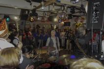 Es folgten zahlreiche Gratulanten und am Ende die Musikfreunde Roisdorf. Der Vorsitzende Jens Scheffler hatte sich für die Gratulation aufgrund der parallel stattfindenenden Musikprobe entschuldigt, aber völlig überraschend marschierten die Musiker nach einer Unterbrechung ihrer Probe ins Weekend ein.